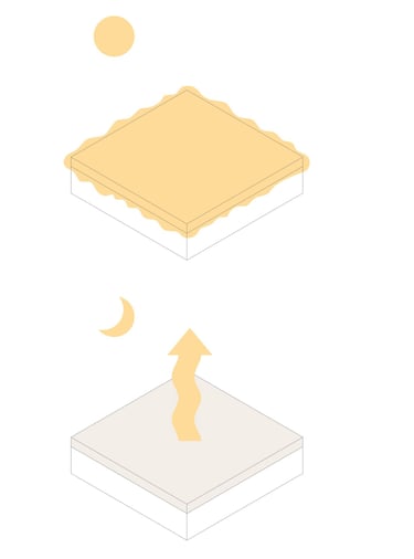 Earth floors help control indoor temperature storing heat during the day and releasing it at night, acting as a solar energy battery.